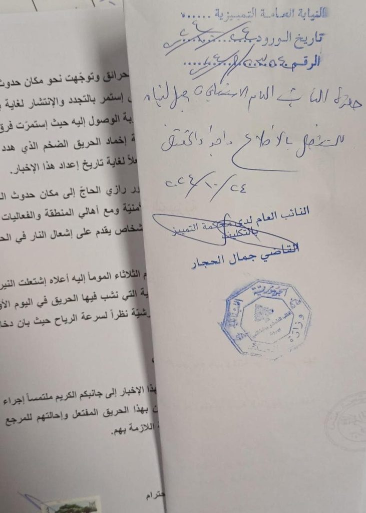 الحاج يتقدّم بإخبار حول حريق الربوة